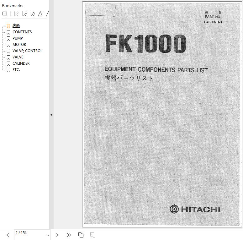 Hitachi FK1000 Equipment Components Parts List P4609-H-1
