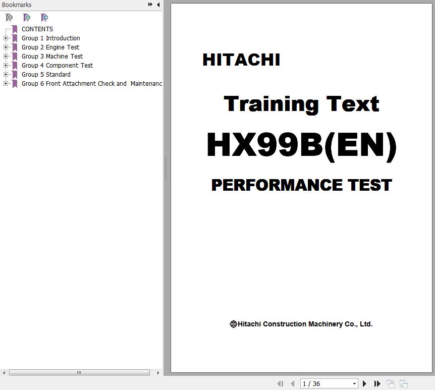 The Bookmarks of Hitachi HX99B(EN) Crawler Mounted Aerial Platform Training Text Performance Test: