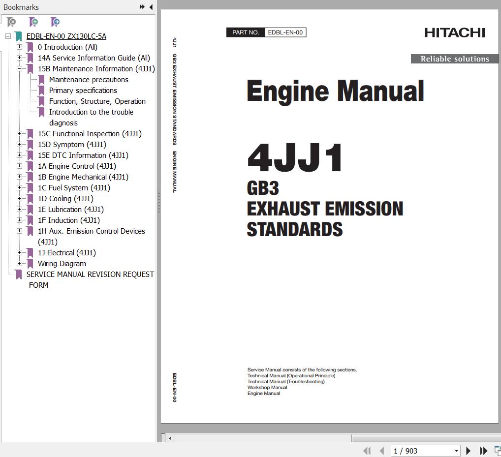 Hitachi Isuzu 4JJ1-XKSA GB3 Exhaust Emission Standards Engine Manual EDBL-EN-00