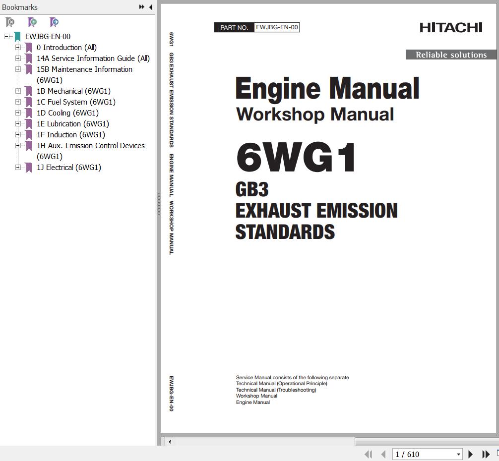 Hitachi Isuzu 6WG1 GB3 Exhaust Emission Standards Workshop Manual EWJBG-EN-00 610 Pages
