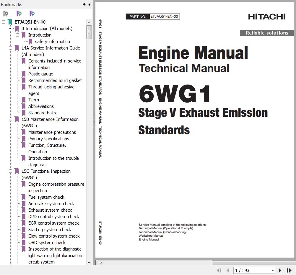Hitachi Isuzu 6WG1 Stage V Exhaust Emission Standards Technical Manual ETJAQ51-EN-00 593 Pages