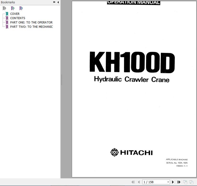 The Bookmarks of Hitachi KH100D Hydraulic Crawler Crane Operators Manual: