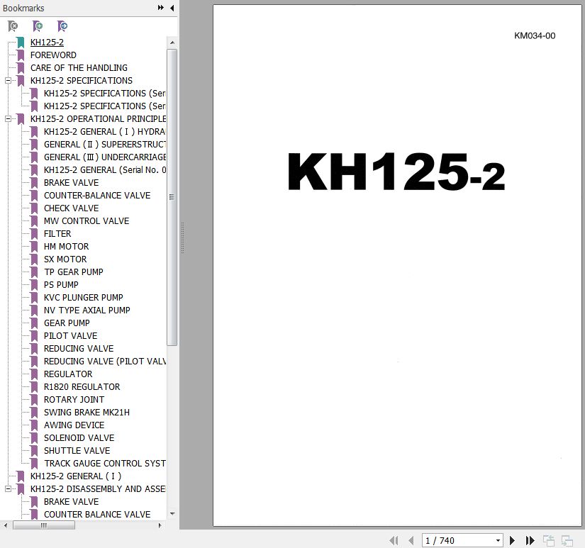 The Bookmarks of Hitachi KH125-2 Hydraulic Crawler Crane Service Manual: