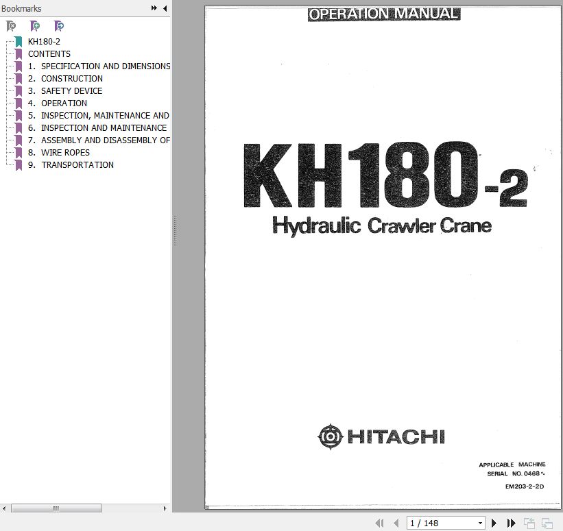 Hitachi KH180-2 Operators Manual EM203-2-2D 148 Pages