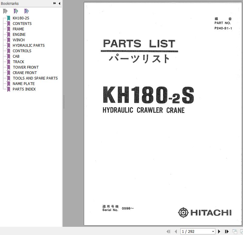 Bookmarks Of Hitachi KH180-2S Hydraulic Crawler Crane Parts List:
