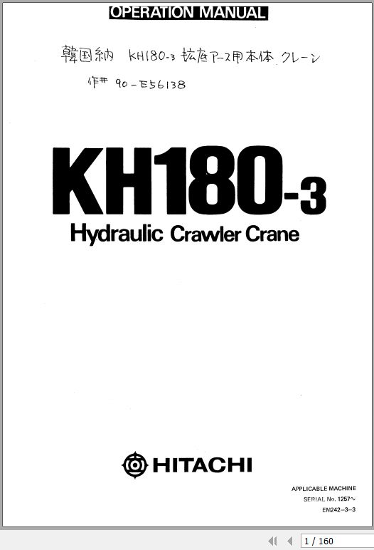 Hitachi KH180-3 Operators Manual EM242-3-3 160 Pages