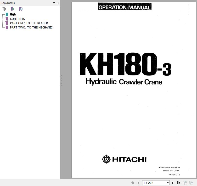 Hitachi KH180-3 Operators Manual EM242-3-4 202 Pages