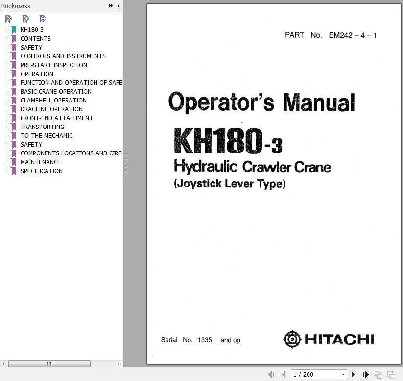 Hitachi KH180-3 Operators Manual EM242-4-1 200 Pages