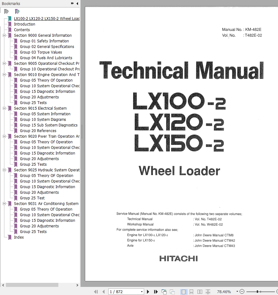 The Bookmarks of Hitachi LX100-2 LX120-2 LX150-2 Wheel Loader Technical Manual: