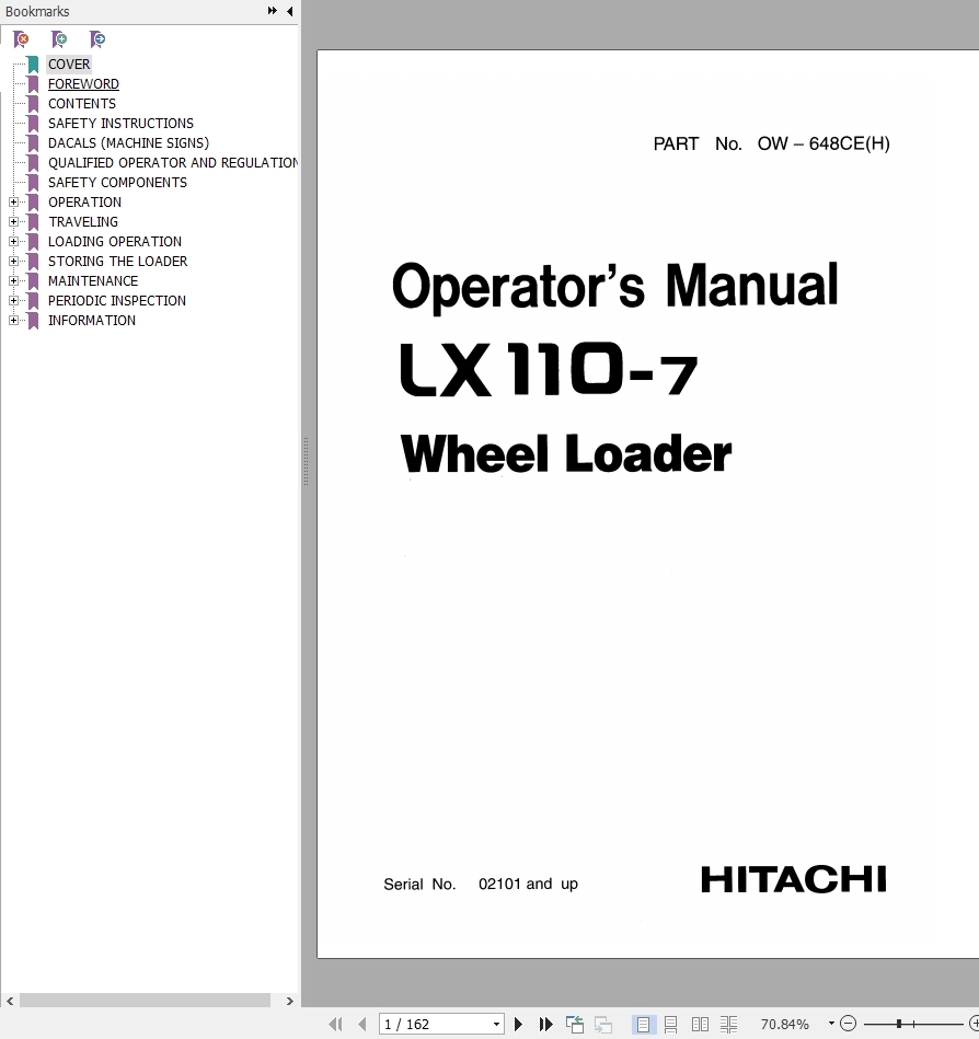 Hitachi LX110-7 Operator's Manual OW-648CE(H)