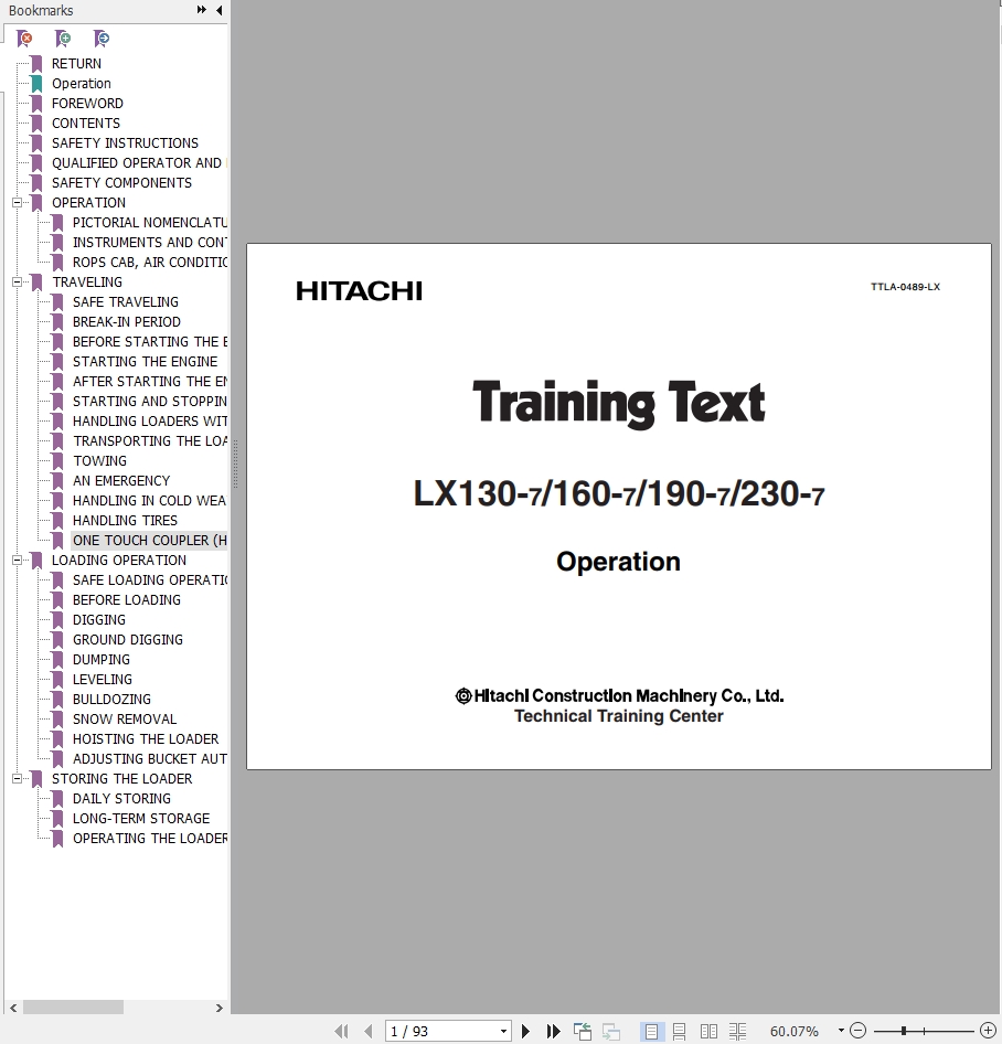 Hitachi LX130-7 LX160-7 LX190-7 LX230-7 Operation Manual TTLA-0489-LX