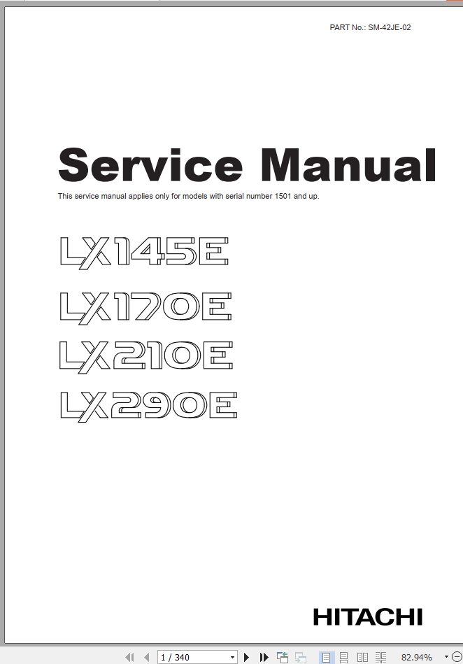 Hitachi LX145E LX170E LX210E LX290E Service Manual SM-42JE-02