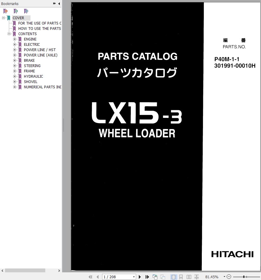 Hitachi LX15-3 Parts Catalog P40M-1-1 301991-00010H