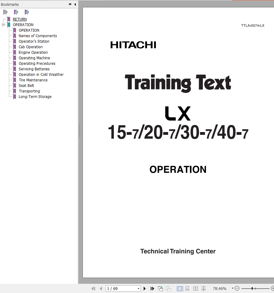 Hitachi LX15-7 LX20-7 LX30-7 LX40-7 Operation Manual TTLA-0574-LX