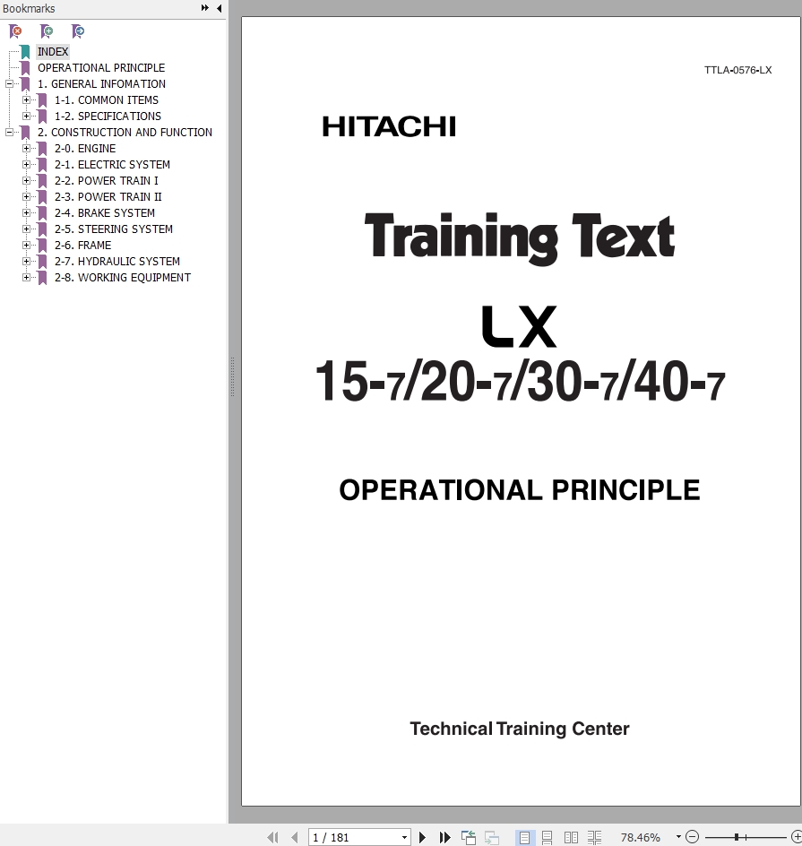Hitachi LX15-7 LX20-7 LX30-7 LX40-7 Operation Principle TTLA-0576-LX