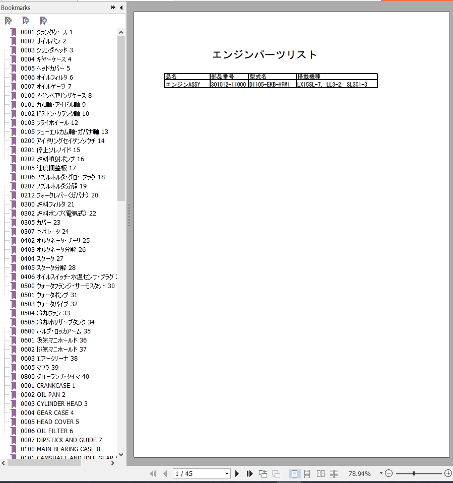 Hitachi LX15SL-7 LL3-2 SL301-3 Engine Parts List D1105-EKB-HFM1