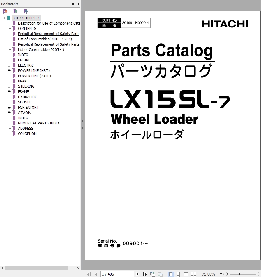 The Bookmarks of Hitachi LX15SL-7 Wheel Loader Parts Catalog: