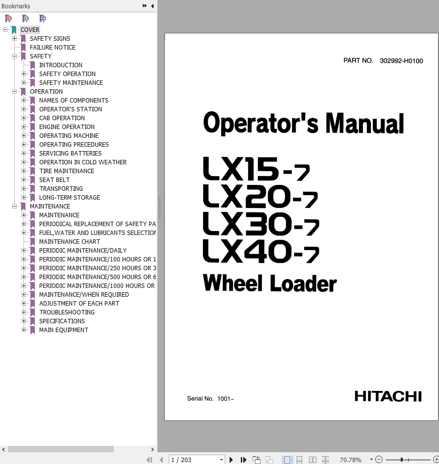 Hitachi LX17-7 LX20-7 LX30-7 LX40-7 Operator's Manual 302992-H0100