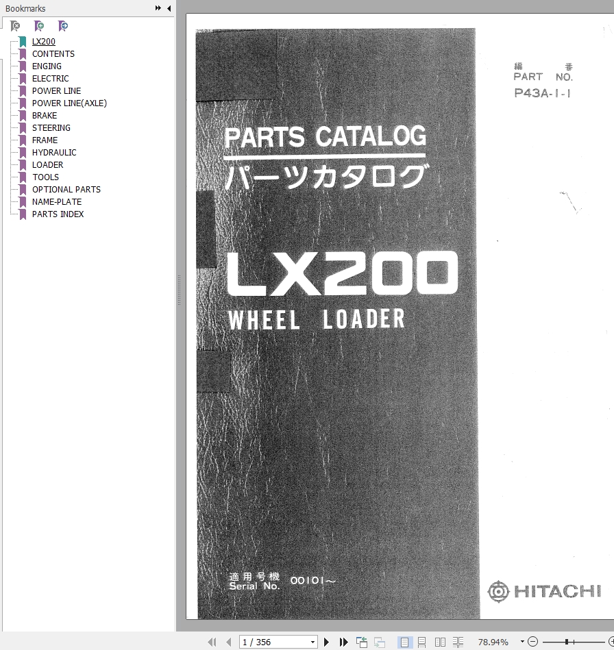 The Bookmarks of Hitachi LX200 Wheel Loader Parts Catalog: