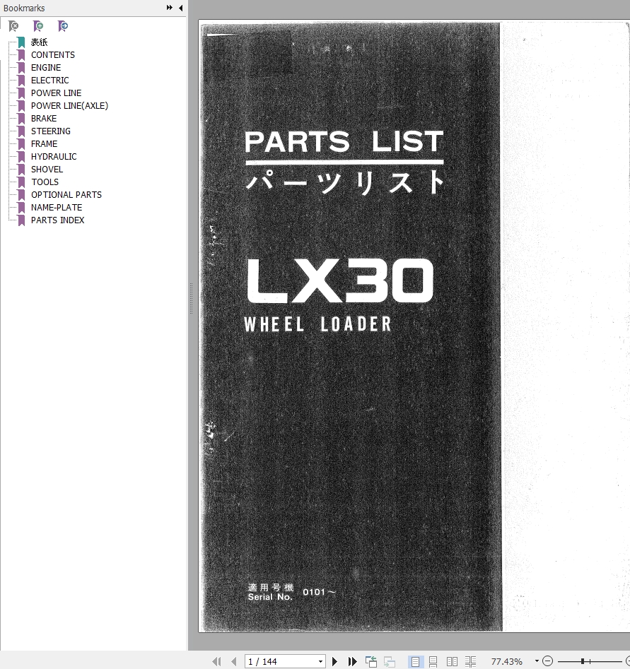 The Bookmarks of Hitachi LX30 Wheel Loader Part List :