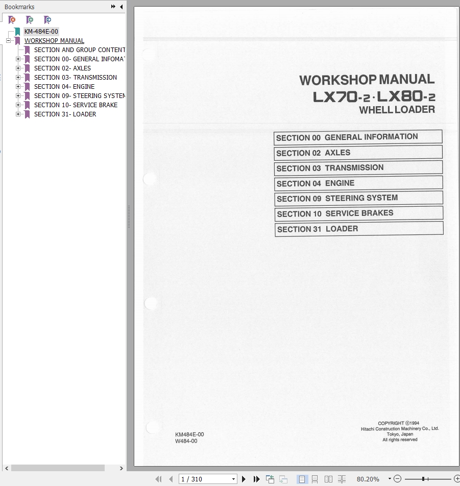 Hitachi LX70-2 LX80-2 Workshop Manual KM-484E-00
