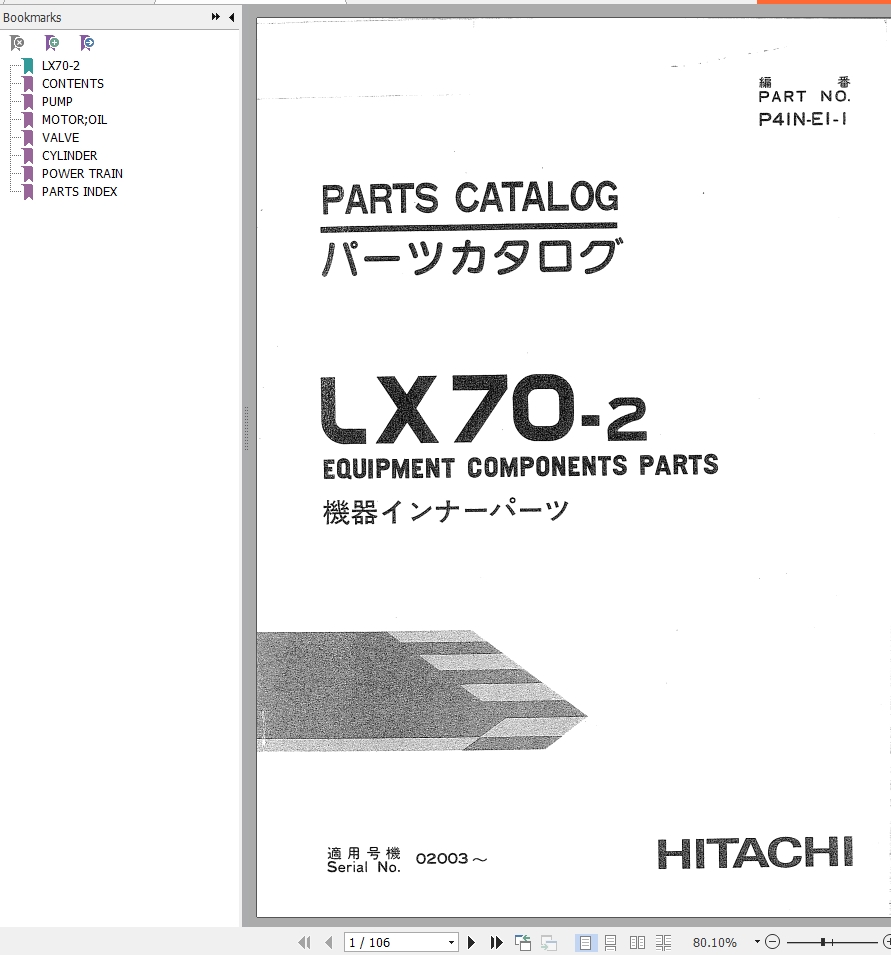 Hitachi LX70-2 Parts Catalog P41N-E1-1