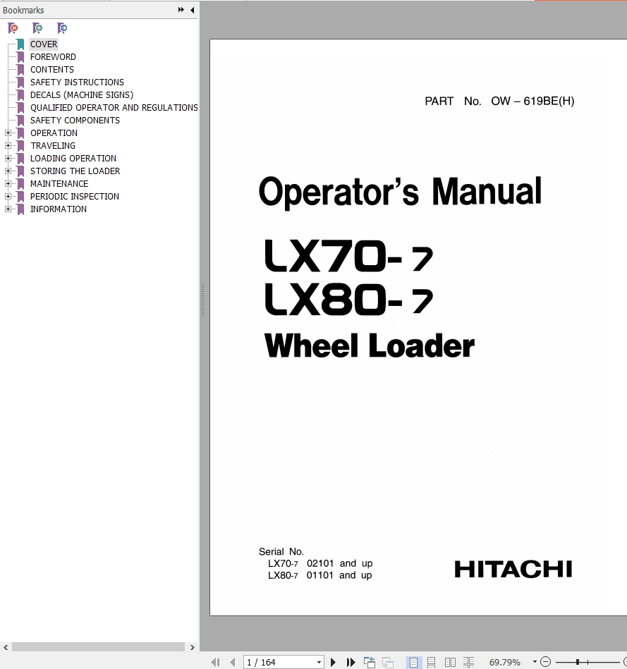 Hitachi LX70-7 LX80-7 Operator's Manual OW-619BE(H)
