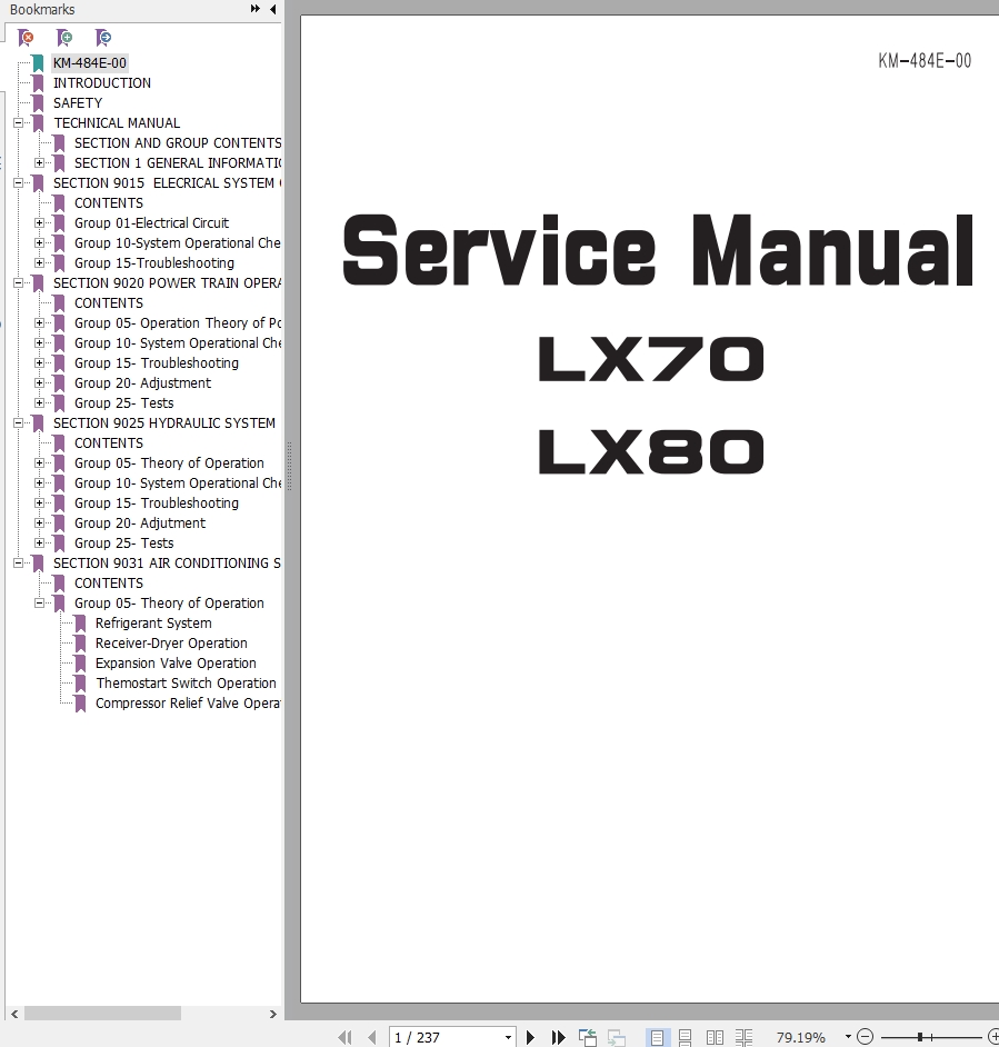 The Bookmarks of Hitachi LX70 LX80 Wheel Loader Service Manual: