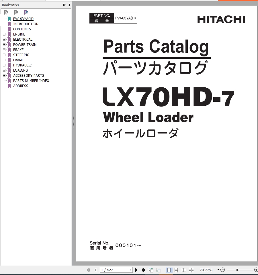 Hitachi LX70HD-7 Parts Catalog PW-63YA(H)