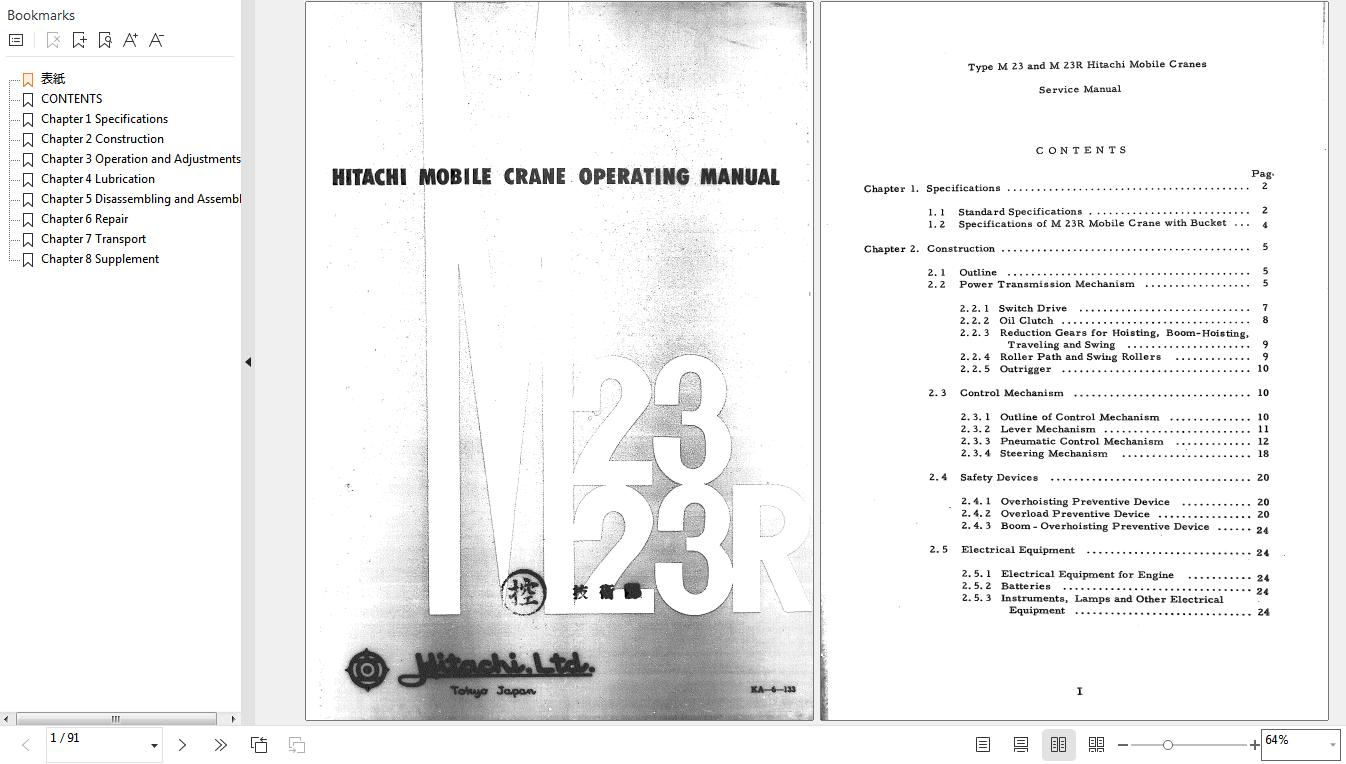 Hitachi M23 M23R Mobile Crane Operations Manual KA-6-133