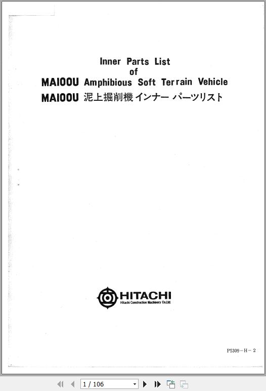 The Bookmarks of Hitachi MA100U Amphibious Soft Terrain Vehicle Inner Parts Catalog: