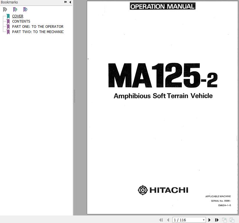 The Bookmarks of Hitachi MA125-2 Amphibious Soft Terrain Vehicle Operator's Manual: