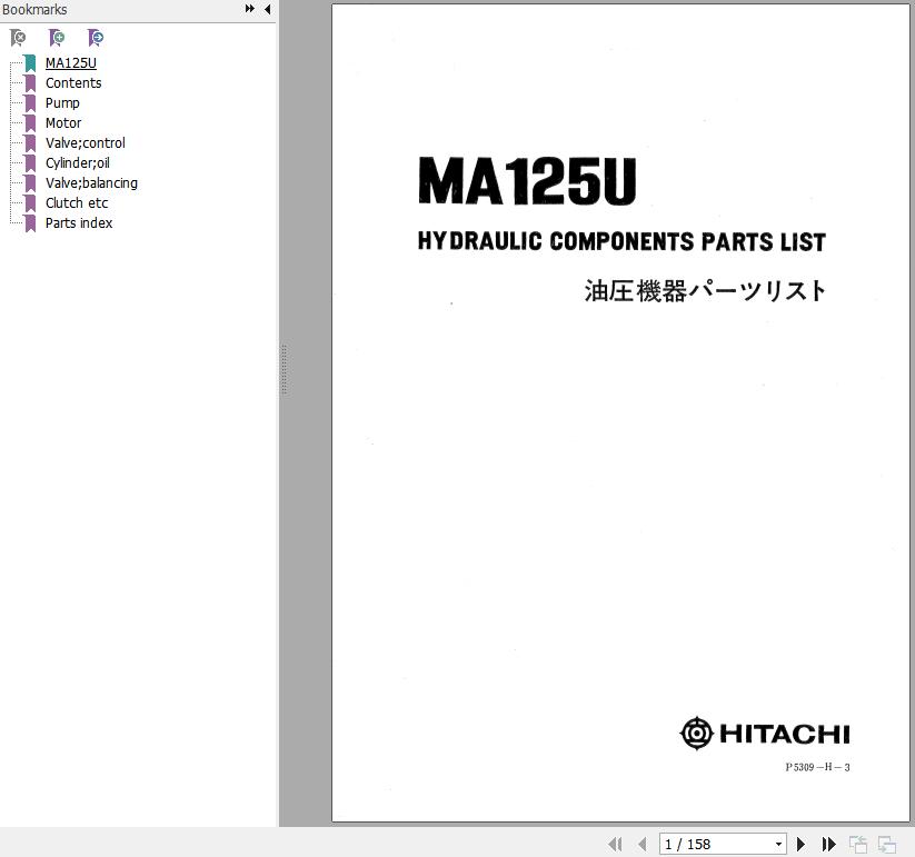 Hitachi MA125U Equipment Components Parts Catalog P5309-H-3 EN JP 158 pages