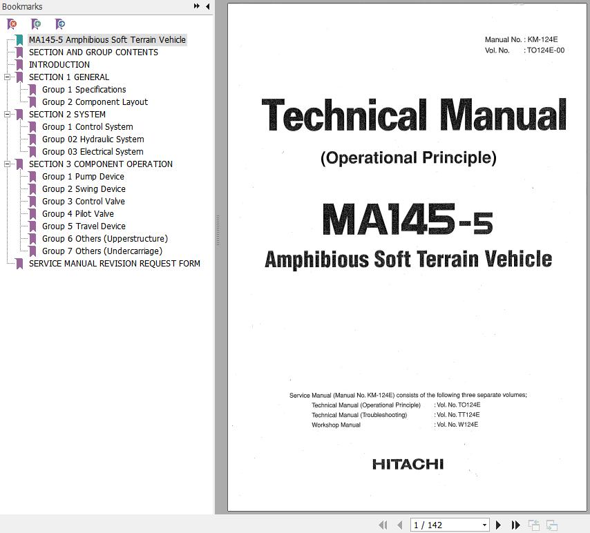 The Bookmarks of Hitachi MA145-5 Amphibious Soft Terrain Vehicle Technical Manual Operational Principle: