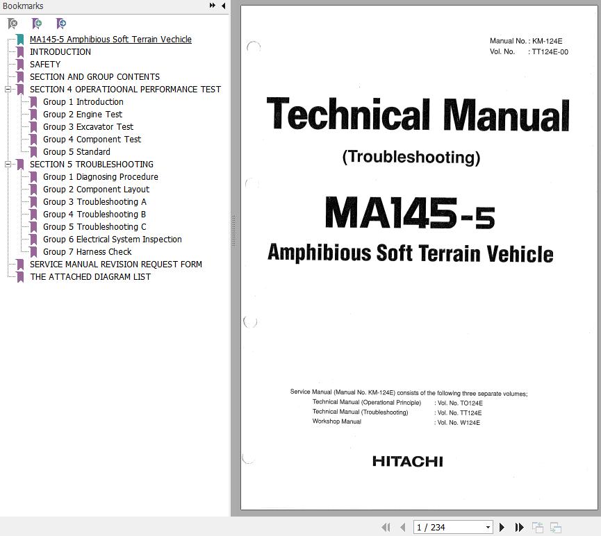 The Bookmarks of Hitachi MA145-5 Amphibious Soft Terrain Vehicle Technical Manual Troubleshooting: