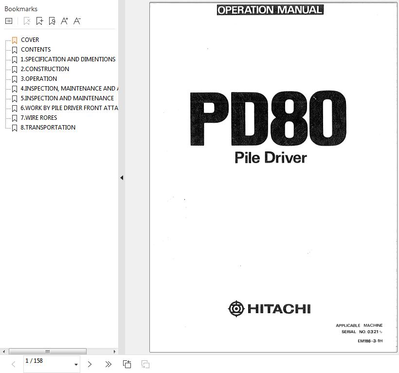 Hitachi PD80 Pile Driver Operators Manual EM186-3-1H