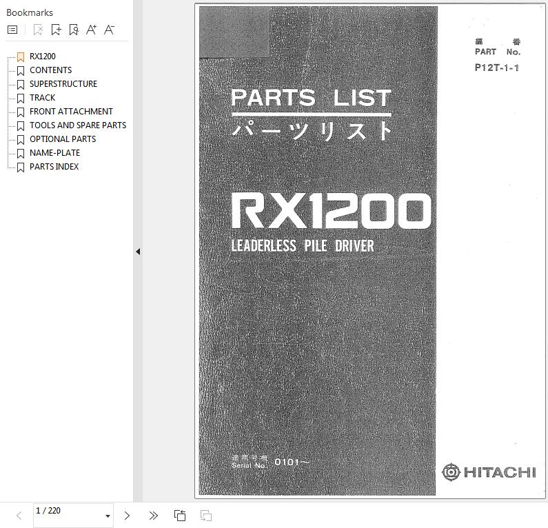 Hitachi RX1200 Leaderless Pile Driver Parts List P12T-1-1