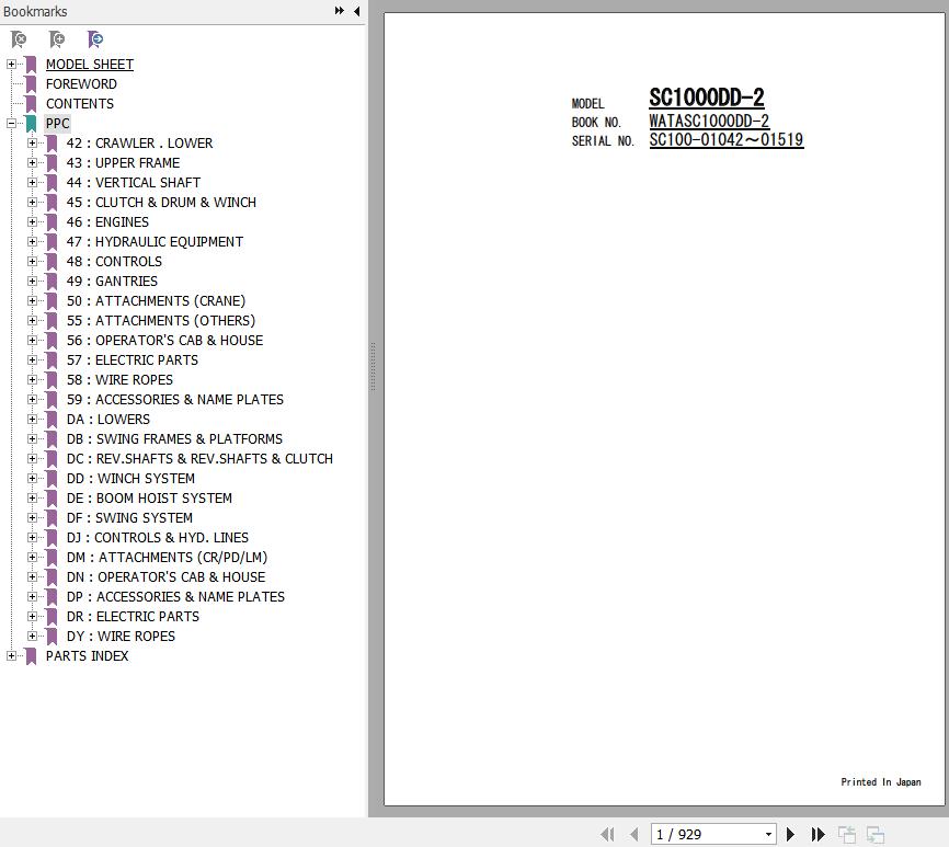 The Bookmarks of Hitachi SC1000DD-2 Hydraulic Crawler Crane Parts Catalog: