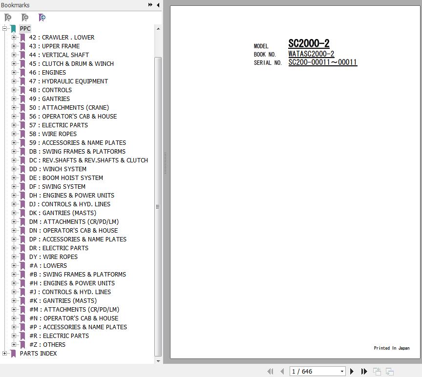 The Bookmarks of Hitachi SC2000-2 Hydraulic Crawler Crane Parts Catalog:
