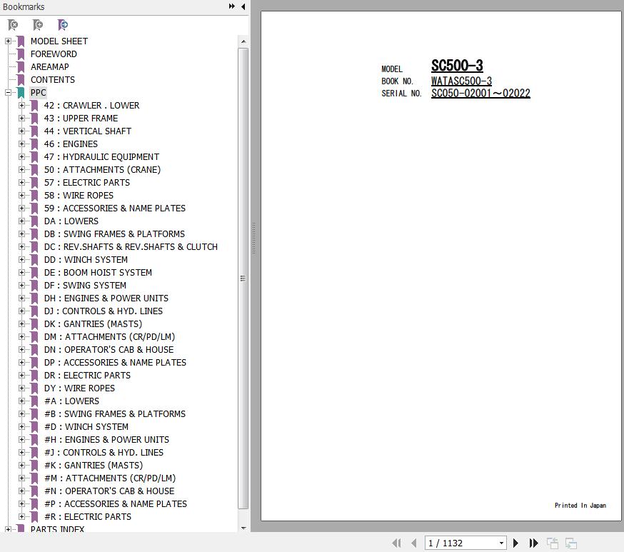 The Bookmarks of Hitachi SC500-3 Hydraulic Crawler Crane Parts Catalog:
