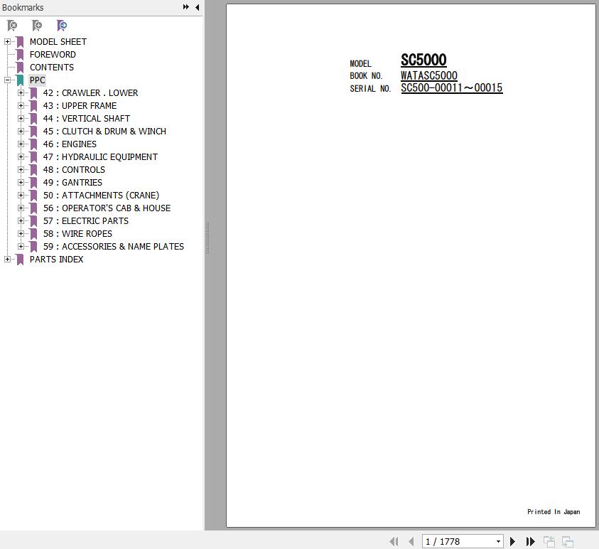 The Bookmarks of Hitachi SC5000 Hydraulic Crawler Crane Parts Catalog: