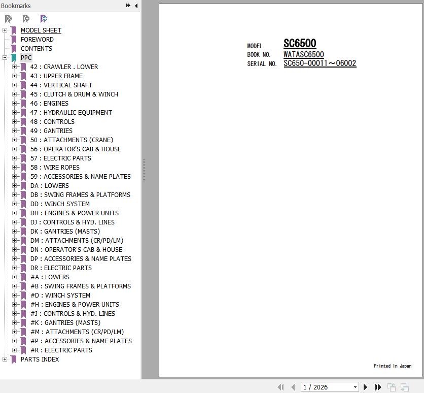 The Bookmarks of Hitachi SC6500 Hydraulic Crawler Crane Parts Catalog: