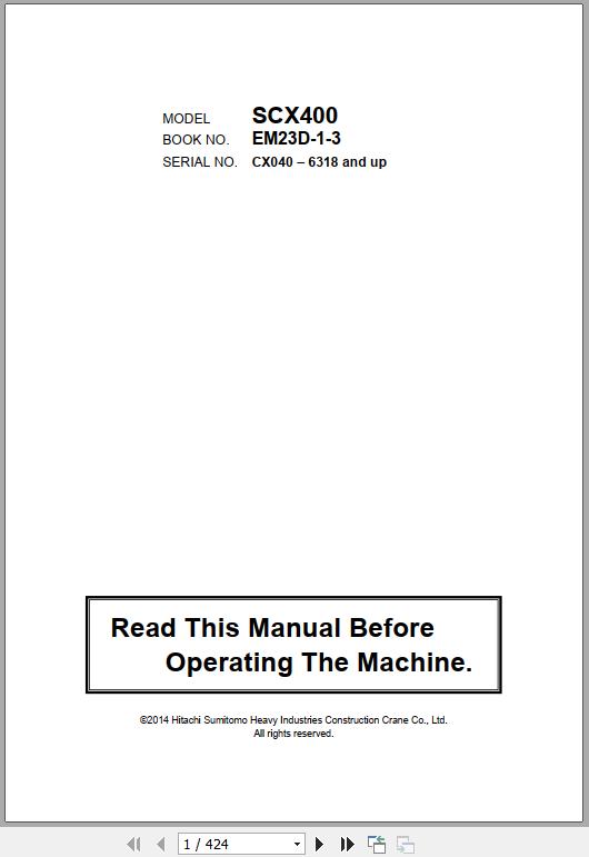 Hitachi SCX400 Operator's Manual EM23D-1-3