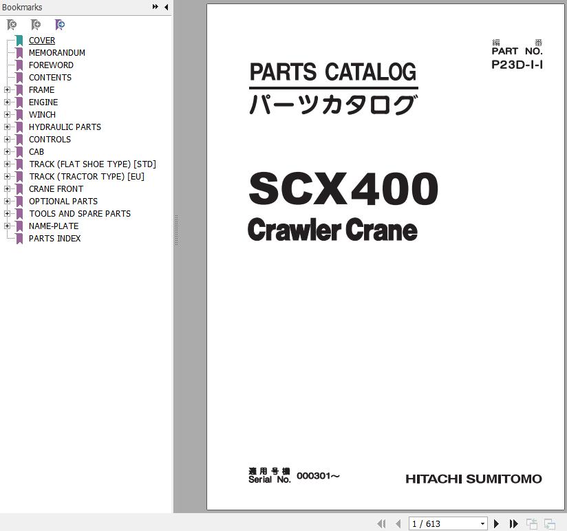 The Bookmarks of Hitachi SCX400 Crawler Crane Parts Catalog:
