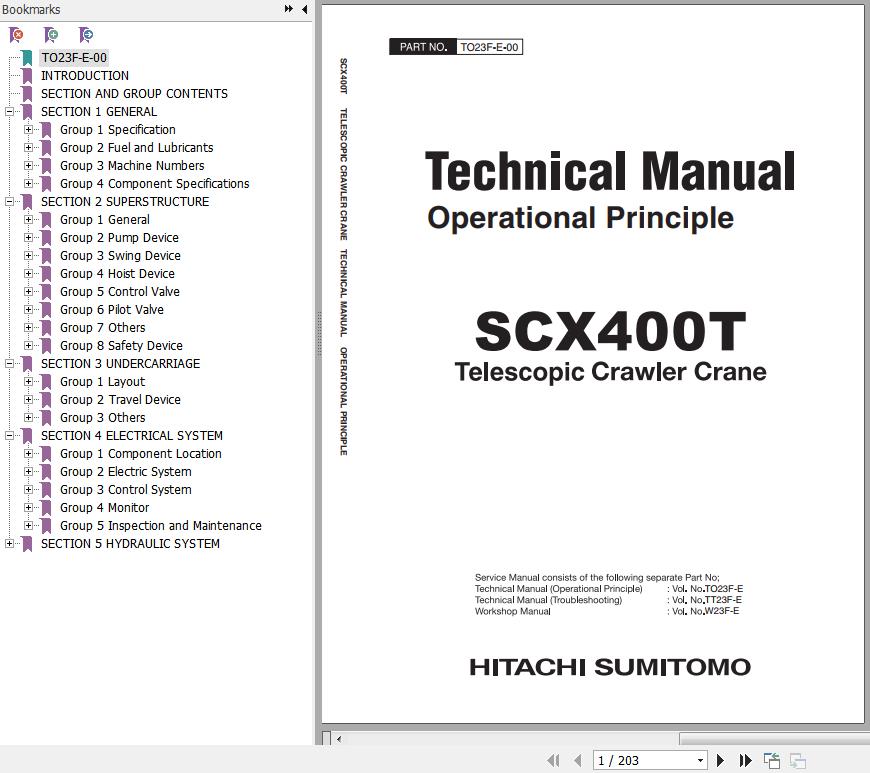 The Bookmarks of Hitachi SCX400T Telescopic Crawler Crane ISUZU Tier 3 Engine Technical Manual Operational Principle: