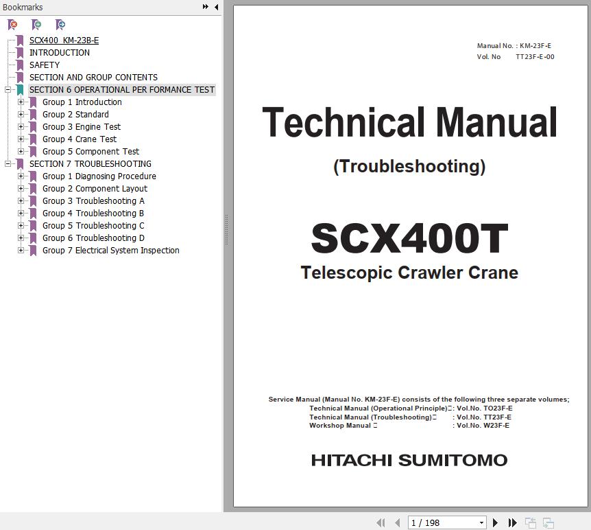 The Bookmarks of Hitachi SCX400T Telescopic Crawler Crane ISUZU Tier 3 Engine Technical Manual Troubleshooting: