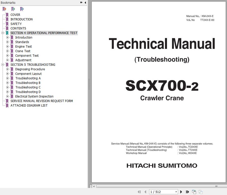 The Bookmarks of Hitachi SCX700-2 Hydraulic Crawler Crane Technical Manual Troubleshooting:
