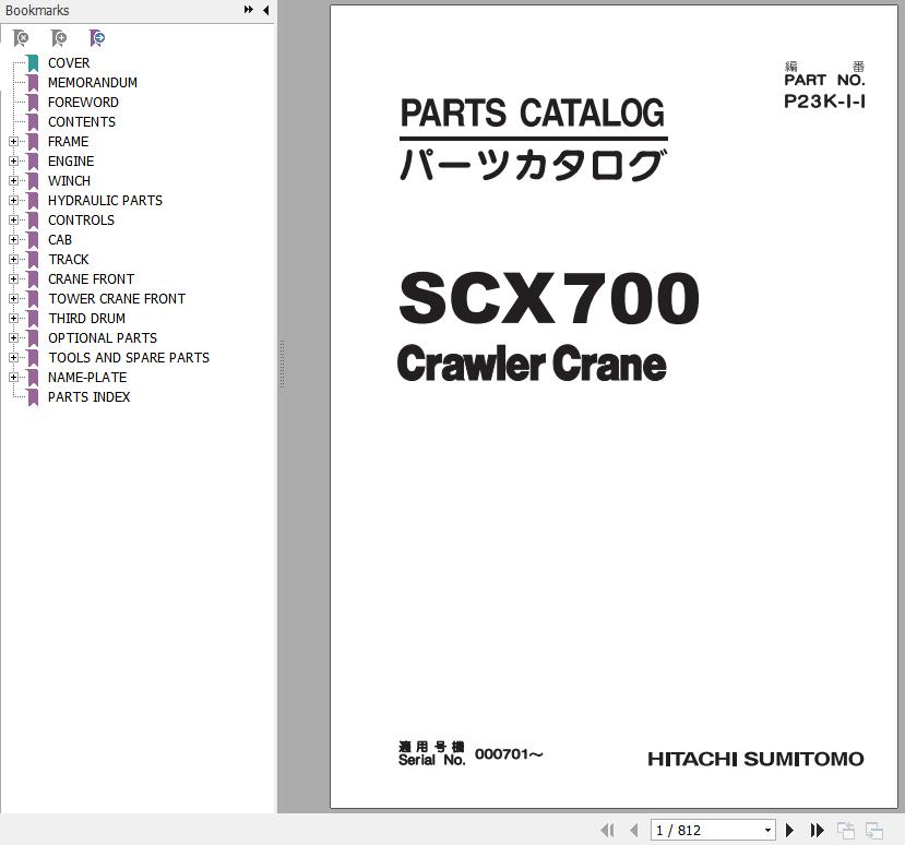 Hitachi SCX700 Parts Catalog P23K-1-1