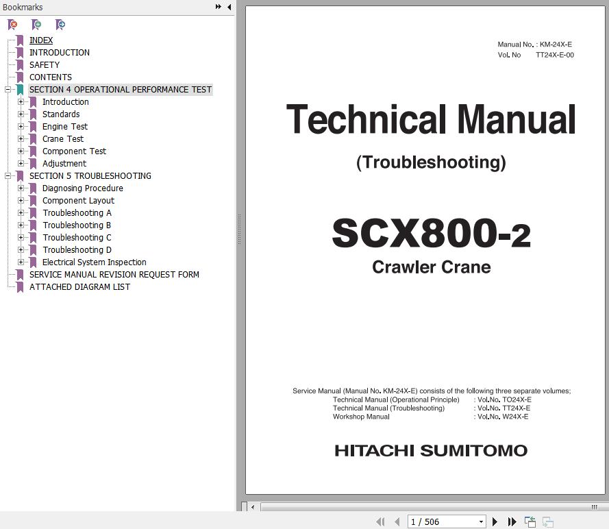 The Bookmarks of Hitachi SCX800-2 Hydraulic Crawler Crane Technical Manual Troubleshooting: