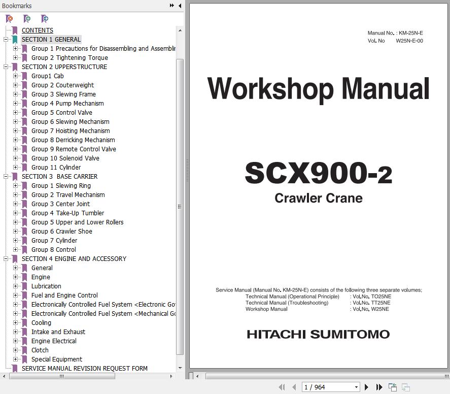 The Bookmarks of Hitachi SCX900-2 Hydraulic Crawler Crane Workshop Manual: